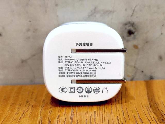 在充电器的底面上,这里带来了南卡20W迷你PD充电器隐藏式折叠插脚,并且清晰地印刷有充电器的详细的输出输入参数、产品信息,以及相关安全标识认证等。值得一提的是,这里还有符合国标的“3C”认证,完全能让你放心使用。