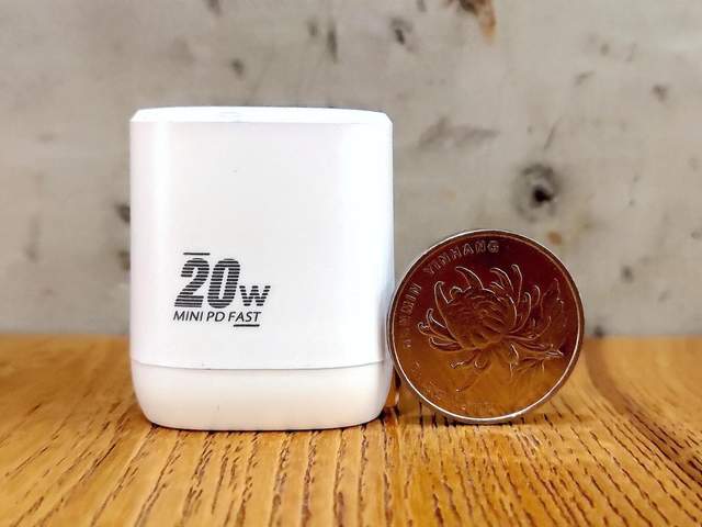 尽管南卡20W迷你PD充电器高度约为两个1元硬币的高度,同时加以隐藏式折叠引脚的设计,相比起其他同类型PD快速充电器略高出插脚的宽度。但其实整体的表现,还是十分精致小巧的,更完全优胜与直列插脚的同类型PD快速充电器。