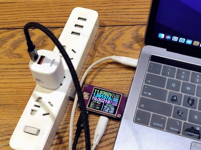 而在USB-C口方面,南卡20W迷你PD充电器更是与USB-A一样,完美激活QC、三星AFC、华为FCP、SCP等快充协议,实现接近于20W满功率的快充。值得一提的是,针对PD快充协议方面,在MacBook Pro的PD充电测试,更是直接拉满到将近20W的满功率负载,完美满足没有标配原装充电器iPhone 12和iPhone 13使用。