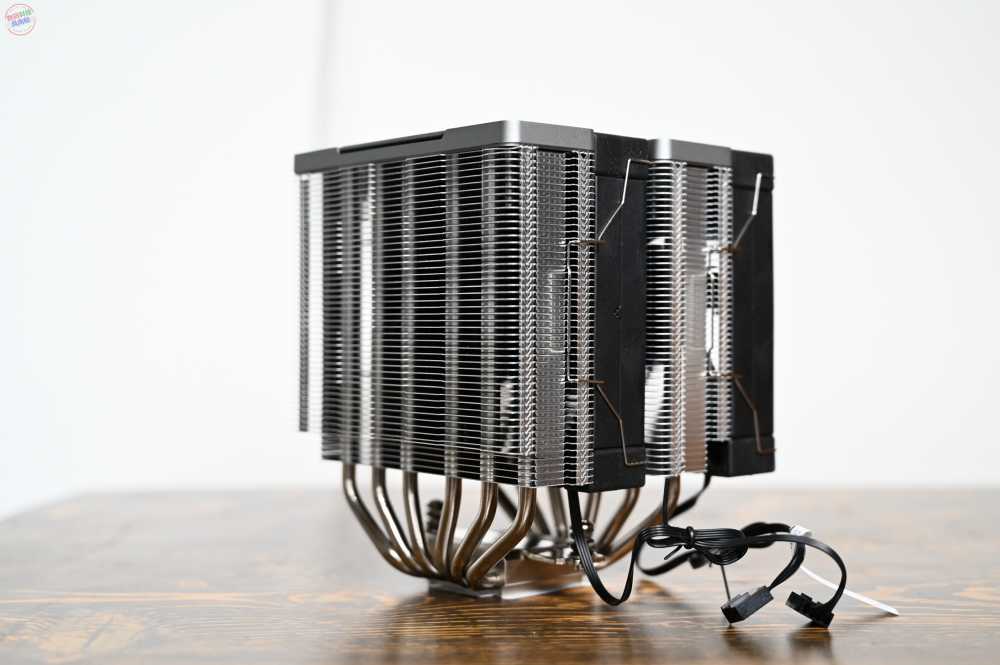 仔细看的话会发现,九州风神AK620的鳍片设计也很有特点,从侧面看是一种棋盘形的效果,而且鳍片部分还采用了扣fin工艺,进一步提升了散热效率。