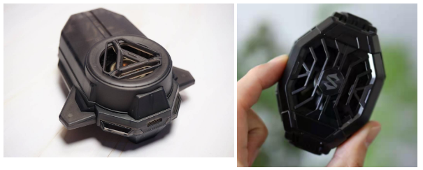 从散热效果上看来,多叶高速转动带来的降温效果固然会更好,根据实验室测得数据红魔涡轮散热背夹一分钟内可降温15℃,最低能降至-4℃,拿在手上直接启动,可以见到散热面快速结霜;而黑鲨2Pro主打1S降温,降温速度快,但最低智能降到1℃。效果上依然是红魔涡轮散热背夹更胜一筹,是因为其内部采用了900mm²的TEC半导体陶瓷制冷片,以及航空铝散热格栅,可以达到急速降温的效果。