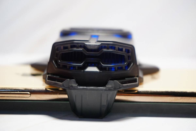 手游用户的散热背夹外观都一定要炫酷,红魔和黑鲨散热背夹都极富科技感设计,以暗黑色为主色调,增加炫酷灯光效果。最大的不同在于红魔涡轮散热背夹沿用一贯的蝶翼拓展式设计,使用时玩家握持手感更好。相比之下,使用黑鲨2Pro 时手指微微蜷缩的手感总是让人稍感不爽。