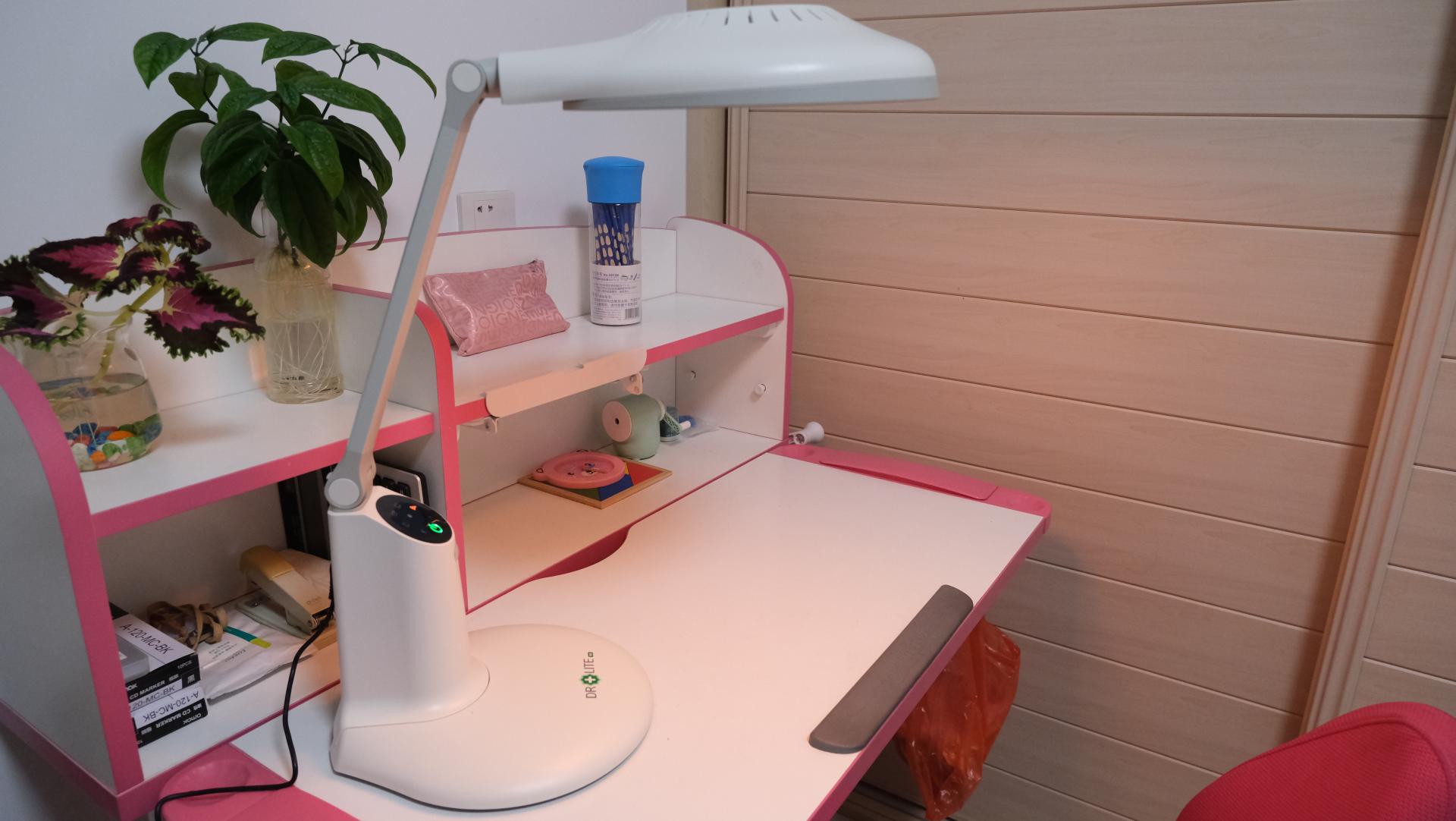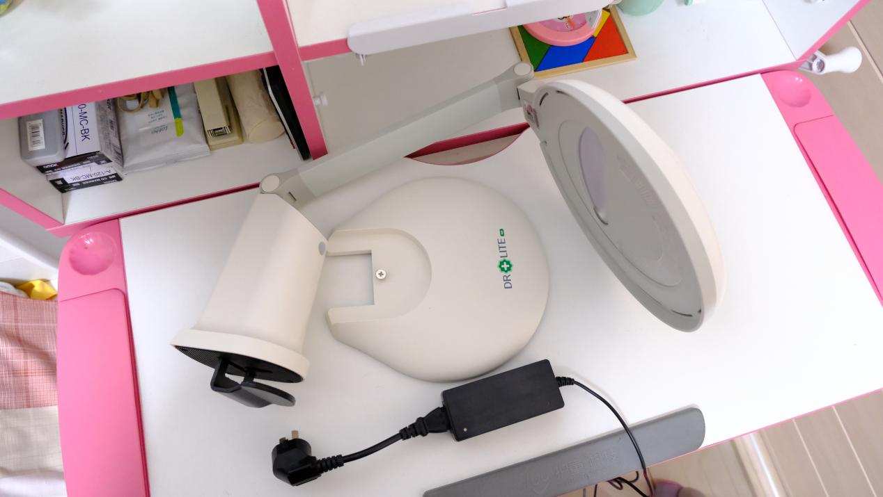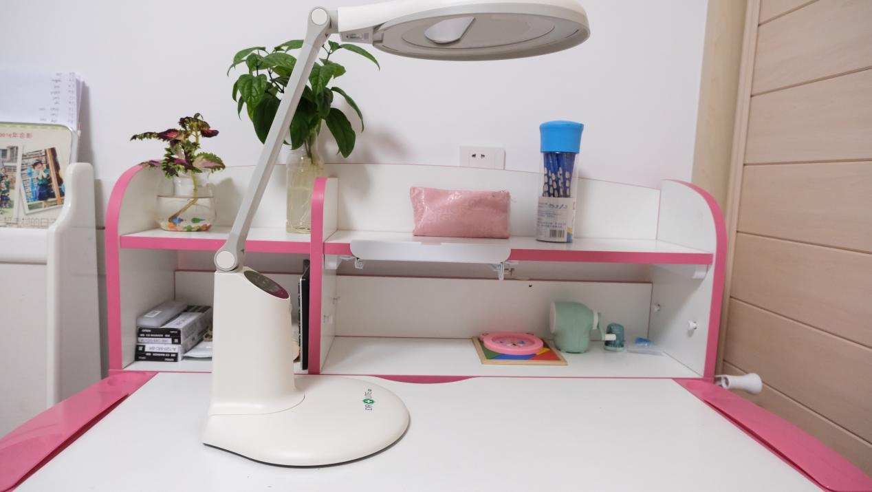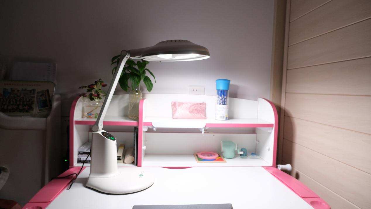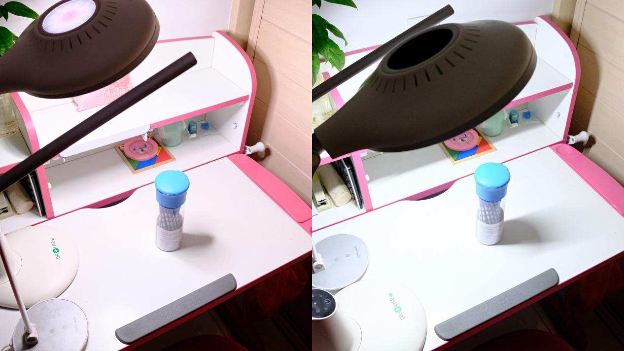 台灯搭载了爱德华医生的偏光无影技术,相比普通的台灯,阴影更少。双重保证,孩子在书桌的任何地方都能获得舒适的光照。我用女儿的以前的台灯对比了一下,阴影确实少很多。