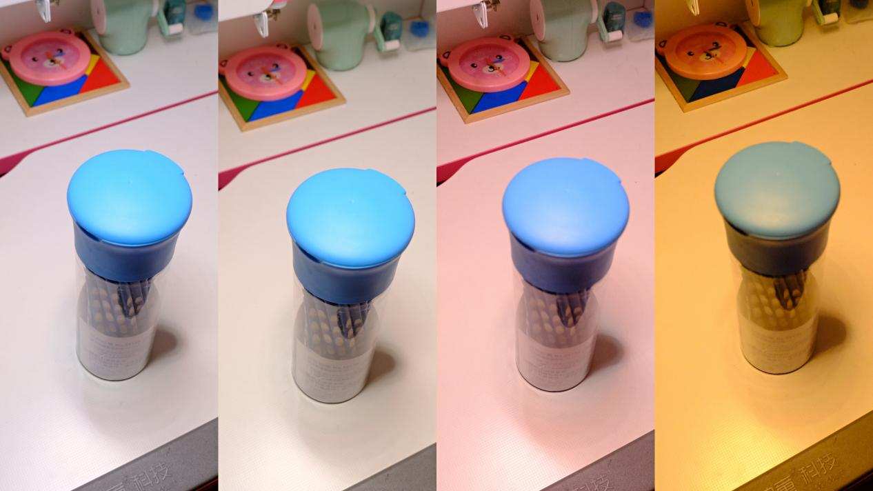 台灯提供了四种光照场景,分别为高清创作、阅读学习、轻松休闲、舒缓助眠,每种光照的色温不同,台灯色温在1800K-5500K之间,我们可以根据自己的使用场景进行选择。