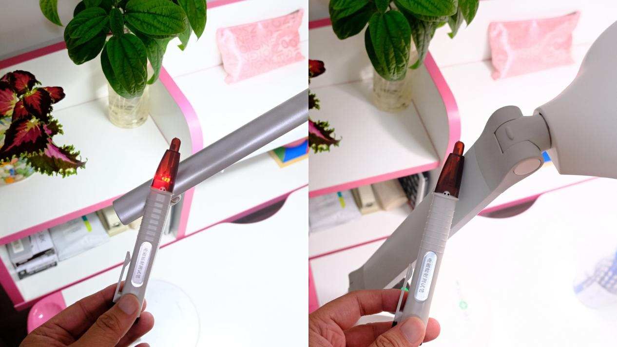 爱德华医生有防电磁辐射技术,能够从台灯的“源头”屏蔽辐射,我用电磁辐射笔分别测试了女儿以前使用的台灯和巴尔德尔之光近缓灯,以前的台灯检测到辐射,而巴尔德尔之光近缓灯没有检测到辐射。