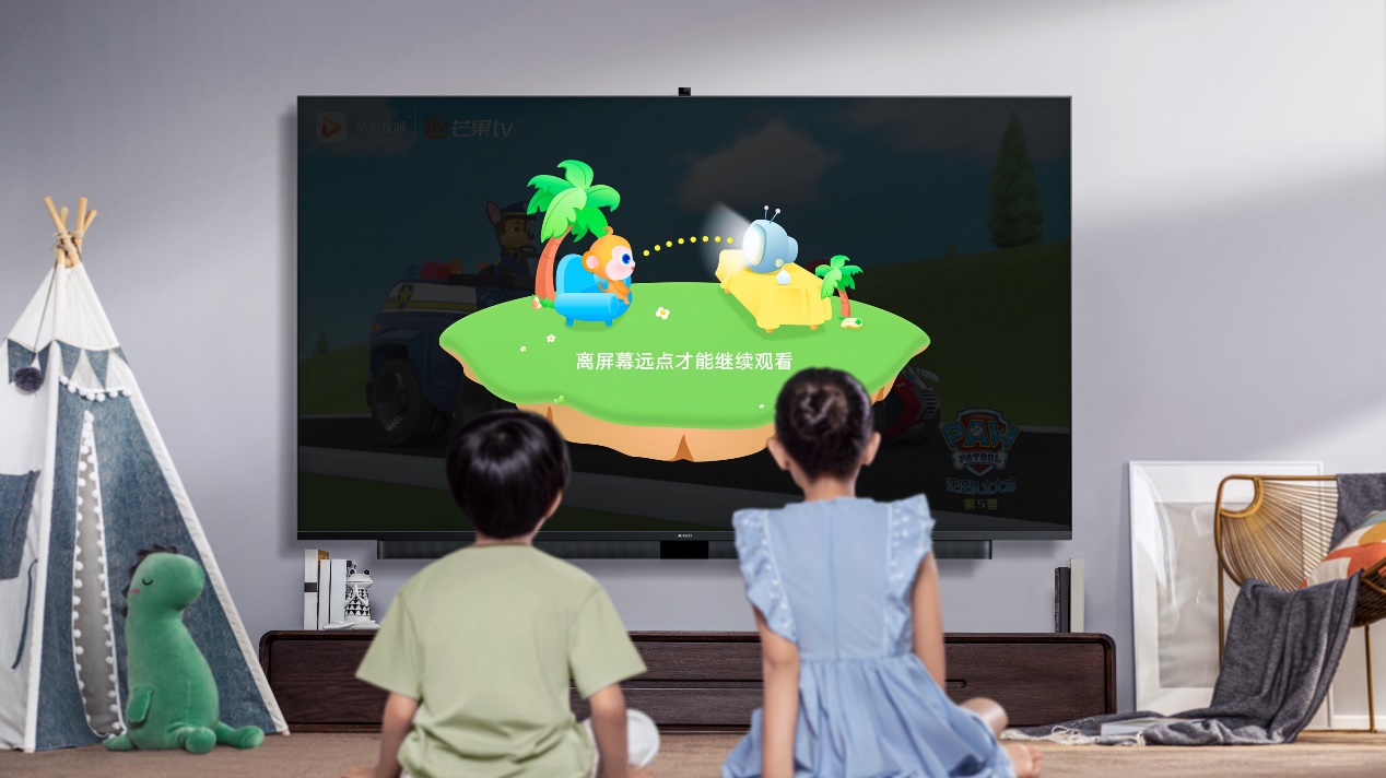 华为智慧屏在这一点首先就可以根据摄像头的硬件设计识别家庭成员是否为孩童,给予合理的建议。比如在1.5米的范围内连续观看超过15秒,华为智慧屏就会出现醒目的提醒,即使在合理的距离范围内出现坐姿不正依然如此。同时,华为智慧屏在音响方面也拥有类似于AI识别的功能,根据小朋友所处的位置给予合理的音响和氛围音,让他们既可以快乐更可以健康的观看自己喜欢的动画片。