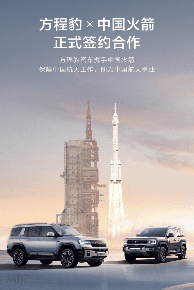 方程豹汽车和中国火箭,一起搞了个大合作。方程豹的豹5和豹8这两款车,要为中国航天的十月份重大任务提供保障服务。特别是即将上市的豹8,定位超级混动智能硬派SUV,智勇双全,得到了中国航天的点赞。